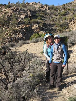 |  | |  | | In a lot of places it was very sandy...tough walking! | | Our first lunch. For lunches, I had Ritz crackers, sausage sticks, peanut butter, and some prunes. Kelly had all kinds of homemade crackers and and home-dried fruit. |