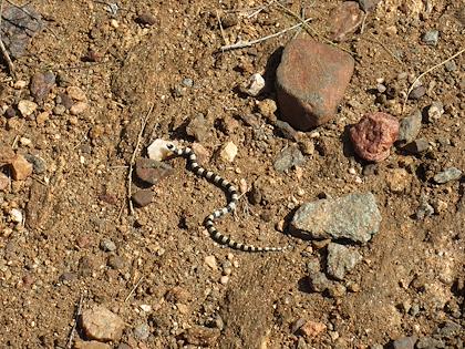 |  | |  | | A baby king snake. When larger, they hunt rattlesnakes. | | Remnants of an old mine along the trail |