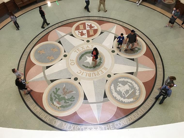 In the building, there's a mural of the 6 different countries that conrolled Texas over the years (France, Spain, Mexico, Confederate US, US, Republic of Texas)