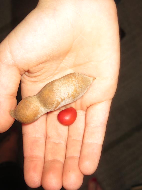 This is the Mountain Laurel seed and seed pod. When rubbed on concrete, the red seed gets really, really hot - there's some kind of chemical reaction. The kids collected them.