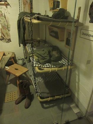 |  | |  | | | A World War II display of a bunker, with a triple bunk bed |