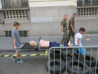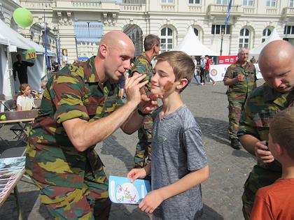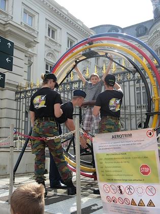 |  | |  | | | We were lucky enough to be in Brussels for the Belgium National Day. There were massive celebrations, with lots of events for children - mainly run by the military, it seems. Kenny had fun on this device. We got there early, so he had the first ride of the day |