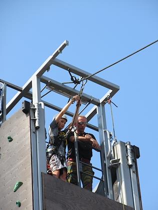 |  | |  | | And rappelling down | | A blindfolded obstacle course challenge. |