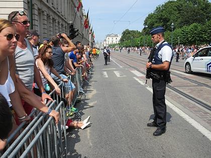 |  | |  | | We didn't stick around for the parade - it would have been hours and hours of standing in the sun | | There were a tremendous amound of soldiers, in addition to big trucks blocking all access to the main festival area. I guess they're thinking of the events in Nice. |