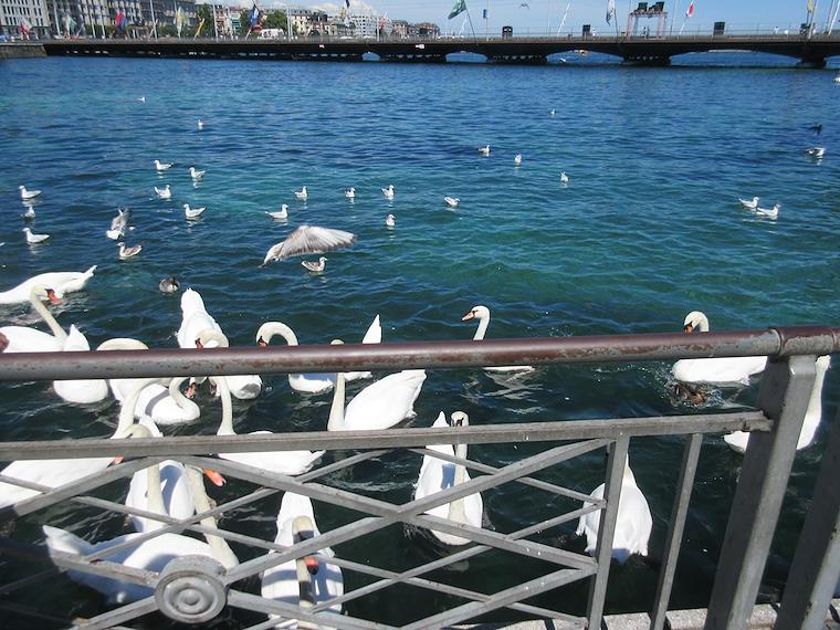 The child-finger-biter swans (a child nearby was crying, had just gotten nipped when feeding the swans)