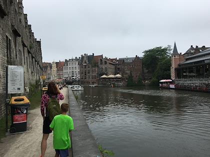 | The canal close to our apartment | ![]() ![]() Really nice seating area just off a bridge we crossed frequently, to get into the old town. | This is about as much of the police as we saw in Ghent. Even though there were huge, huge crowds of people, there were only a few individual police officers around - nothing at all like Brussels. | ![]() ![]() Rapping out of a window to the crowd | ![]() ![]() We took one of these tour boats | ![]() ![]() Scenes from the canal | ![]() ![]() Castle Gravensteen | Notice the gas mask on this angel | ![]() ![]() Rabot sluice | This event mystified us. Something like a lottery/raffle, but nobody was writing any of the numbers down, or looking at any papers | ![]() ![]() On top of Gravensteen Castle. | ![]() ![]() Peter, posing nicely. I think I promised him extra screen time for good photos. | ![]() ![]() I saw this foldable canoe from the top of the castle - reminded me of my Orukayak. I looked up the name on the side, it turns out the maker is native to Ghent, and there's a Kickstarter campaign for it! Here's their website: http://onakcanoes.com/ | ![]() ![]() ![]() ![]() Lovely strawberries, ready for strawberry waffles | The bridge next to our apartment is raised for boats | ![]() ![]() We're able to go by on the walking bridge | ![]() ![]() This is a Bombard, or medieval canon - the Dulle Griet | ![]() ![]() Streets were packed with revelers, we had a hard time finding a restaurant | ![]() ![]() So we ate at a "soup only" restaurant. Not Eric's favorite. | This kids was really good on the accordian. Much better than the gypsies that play on the streets. | ![]() ![]() A huge fine for "peeing in the wild". Necessary, I guess, considering all the beer that was being consumed | ![]() ![]() Massive crowds | I wonder how the place looks when the Ghent Festival is not going on? | ![]() ![]() The next day, on our way to St. Peter's Abbey (Sint- Pietersabdij) - I wonder how long these bikes have been here? | At St. Peter's Abbey they had an interesting audio/video guide that lead you through the whole complex | ![]() ![]() We took a rest in the beautiful medieval garden | ![]() ![]() They hire this hall out for events and parties | ![]() ![]() At the Ghent Botanical Gardens | ![]() ![]() SMAK - sounds like an acronym for an eastern Europen spy organization in a James Bond film. But it's actually the modern art museum (Stedelijk Museum voor Actuele Kunst) | In the beautifully scenic ruins of St Bavo's Abbey, from the 7th century | ![]() ![]() ![]() ![]() ![]() ![]() ![]() ![]() We looked around for geocaches, and there was one right outside the abbey ruins, very well hidden. Peter found it. | ![]() ![]() Weird building - how do the windows work? | This is the bike parking lot at the main train station. We rented bikes there - it was quite the ordeal getting them, the rental place was not well run. | ![]() ![]() We biked along a canal. Found this zipline area near a park. | ![]() ![]() ![]() ![]() There was some beautiful canal-front biking, with interesting houses the whole way | ![]() ![]() ![]() ![]() A ferry across the canal. | ![]() ![]() Walking back to the apartment | At Konig Albertpark | ![]() ![]() On the way to take a day trip to Bruge, via train. Bruge, in contract to Ghent, had loads of tourists, many in large tour groups that clogged the roads. | At the Begijnhuisje in Bruge | ![]() ![]() A boat tour | ![]() ![]() The little order kiosks are very popular at European McDonalds. | At the gothic town square | ![]() ![]() ![]() ![]() Cute narrow house | They had some outdoor toys at the folk museum we went to | ![]() ![]() ...and a friendly cat | ![]() ![]() To make the city more interesting for the kids, I allowed them 2 extra minutes of screen time every time they found a year number on a building. This one is from 1672. | ![]() ![]() Beautiful canal-side balcony | ![]() ![]() ![]() ![]() ![]() ![]() These scallop shells in the street mark the Bruges section of the ancient pilgrim route to Santiago de Compostela. | ![]() ![]() Back in the Bruge train station | In Ghent again - around the Lieve canal area | ![]() ![]() Next to the Rabot sluice is a public housing high-rise, which is scheduled to be demolished | ![]() ![]() At Sint-Baafskouterpark | ![]() ![]() A great playground at Bijgaardepark | ![]() ![]() View from the bell tower in Ypres - destoyed in World War I (known as the Great War until World War II), but rebuilt | ![]() ![]() Walking around World War I battlefields - Klein Zwaanhof. The line of different color concrete marks where an old trench was located. It's now an industrial area - you can see a huge manure facility behind it. | ![]() ![]() The site of the Yorkshire Trench | ![]() ![]() One of the many WWI cemetaries around here. Millions of soldiers died in this war. | ![]() ![]() ![]() ![]() A trench near a large mine crater | Nearby - a huge section of vines with many tunnel spiders. Kind of creepy | | ||||||||||||||||||||||||||||||||||||||||||||||||||||||||||||||||||||||||||||||||||||||||||||||||||||||||||||||||||||||||||||||||||||||||||||||||||||||||||||||||||||||||||||||||||||||||||||||||||||||||||||||||||||||||||||||||||||||||||||||||||||||||||||||||||||||||||||||||||||||||||||||||||||||||||||||||||||||||||||||||||||||||||||||||||||||||||||||||||||||||||||||||||||||||||||||||||||||||||||||||||||||||||||||||||||||||||||