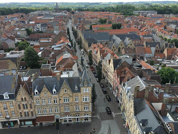 View from the bell tower in Ypres - destoyed in World War I (known as the Great War until World War II), but rebuilt