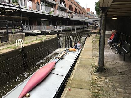 |  | |  | | We watched this boat go down a lock. There were about 70 plus locks on this canal - the Rochdale canal. That's lots of work for each one of them! | |