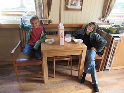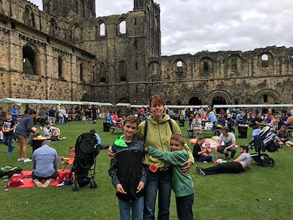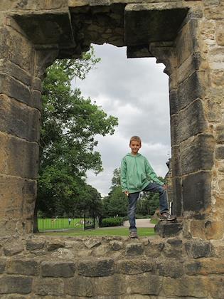 |  | |  | | Breakfast on the barge | | Kirkstall Abbey, near Leeds. I thought this would be deserted, but it turns out it's in the suburbs of Leeds, and was very crowded. There was a market going on while we were there |