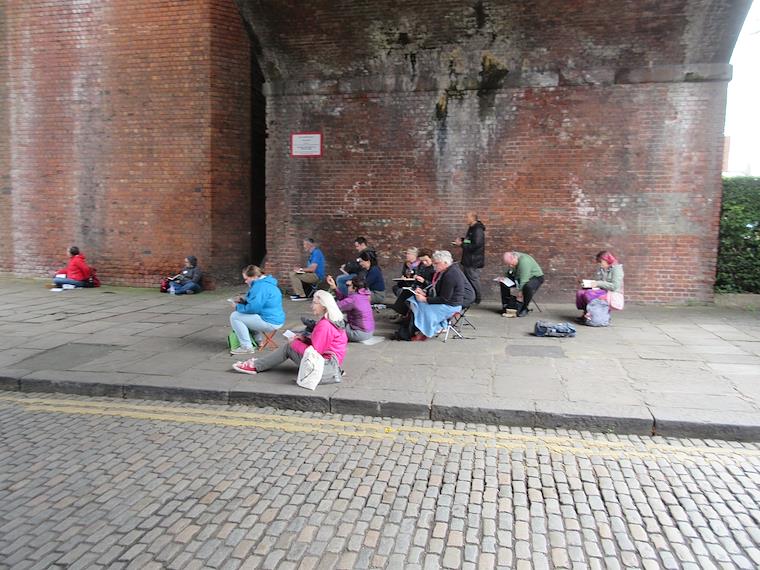 I saw dozens of people at various scenic locations, sketching and painting. I talked to one of them. Apparently it's the international convention of Urban Sketchers.