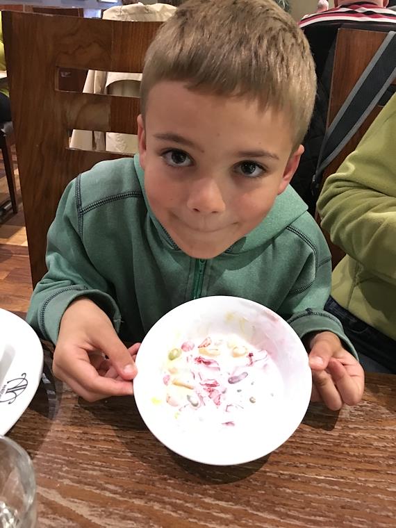 Peter wanted me to take a picture of him eating desert at the indian buffet in Newcastle. He's eating ice cream soup with M&M candies...