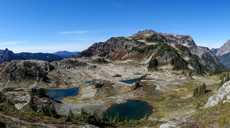 Our first glimpse of the lovely basin filled with little lakes, or tarns