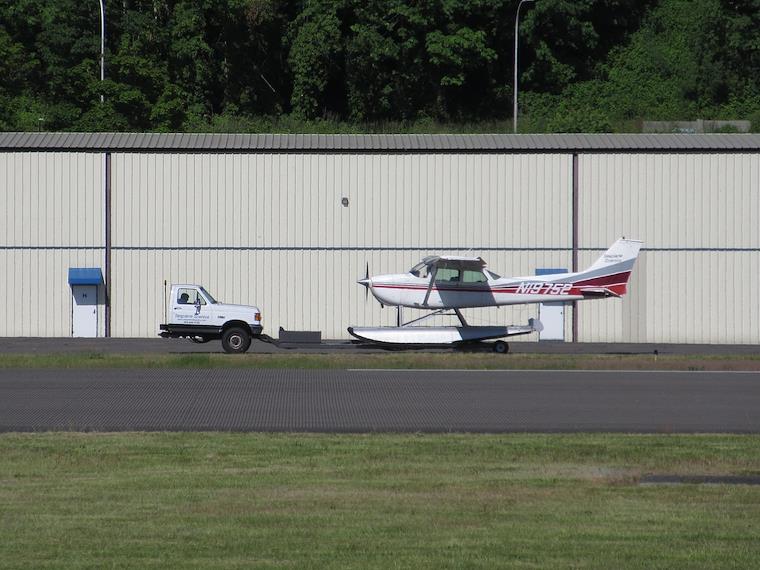 Funny looking half-truck, that is used to ferry floatplanes.