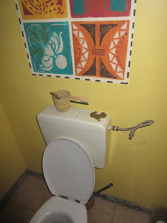 Yech - a monkey had gotten inside the tent, and pooped on the tank of the toilet!