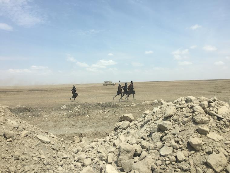 These Masai are all dressed in black, with white face paint. This is characteristic of the boys coming-of-age ritual, but apparently these particular ones are fakes set up for tourists