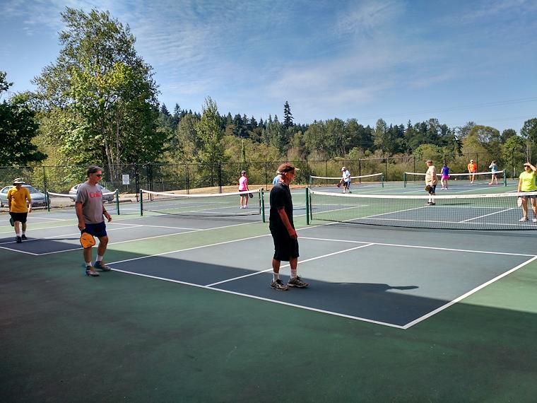 More pickleball at the International School. I took pictures to show city officials how much the courts are used