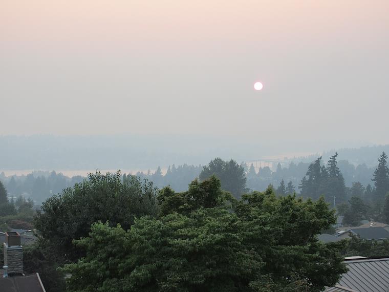 We had lots of smokey days because of forest fires this summer. You can't really see it well in the picture, but the sun was red, and we could barely see Mercer Island