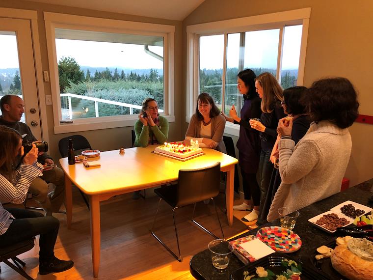 An assortment of pictures from winter 2018, includinig Sylvia's 50th birthday party