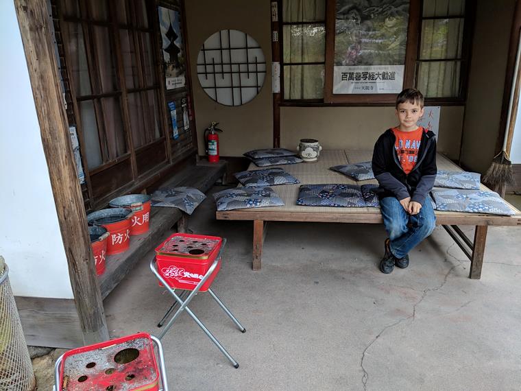 At a smoking rest area in one of the temples