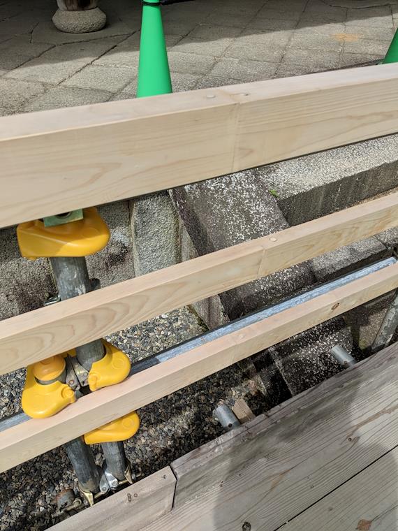 The woodworking on the walkway built to route around the building project was very well done. You can barely see the join in the wood here.