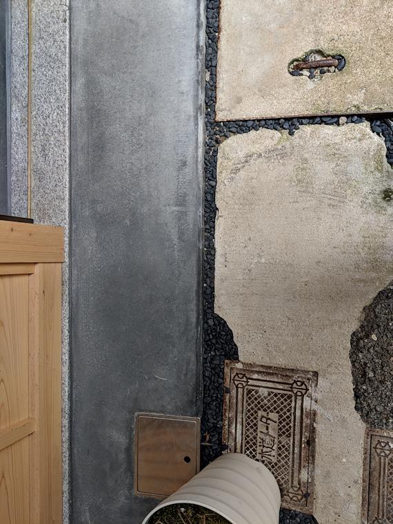 I like what the AirBnB owner did with the crumbly concrete around the entryway - just putting these black pebbles around it makes it look much better