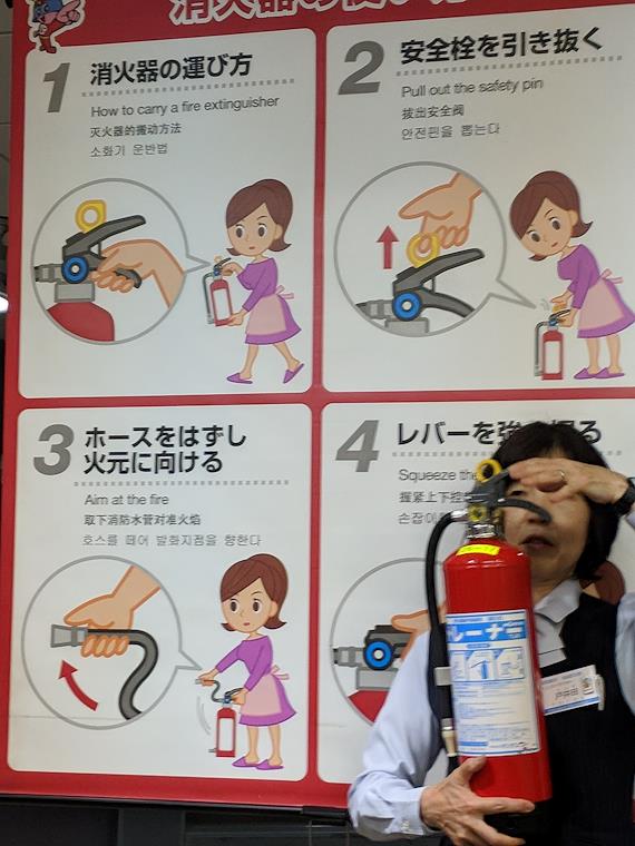 We did the tour at the Ikebukuro Life Safety Learning Center. First, fire extinguisher usage