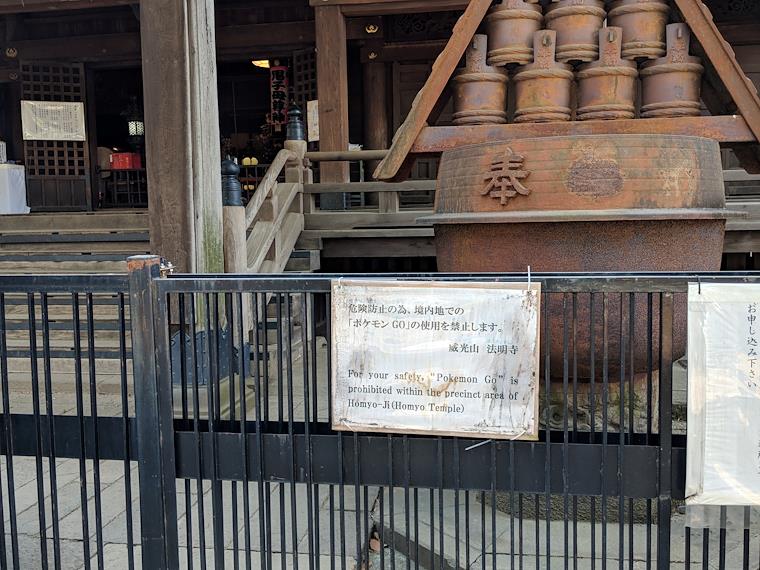 At the Zoshigaya Kishimojindo Temple - the sign says "No Pokemon Go!