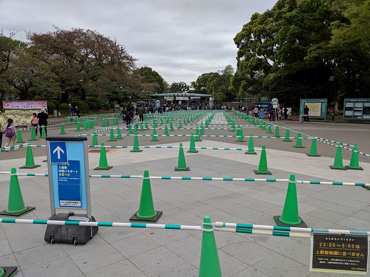 Cones to guide the lines for the zoo. I believe this line is only if you want to see the pandas. I wouldn't want to be waiting here if the line were this long!