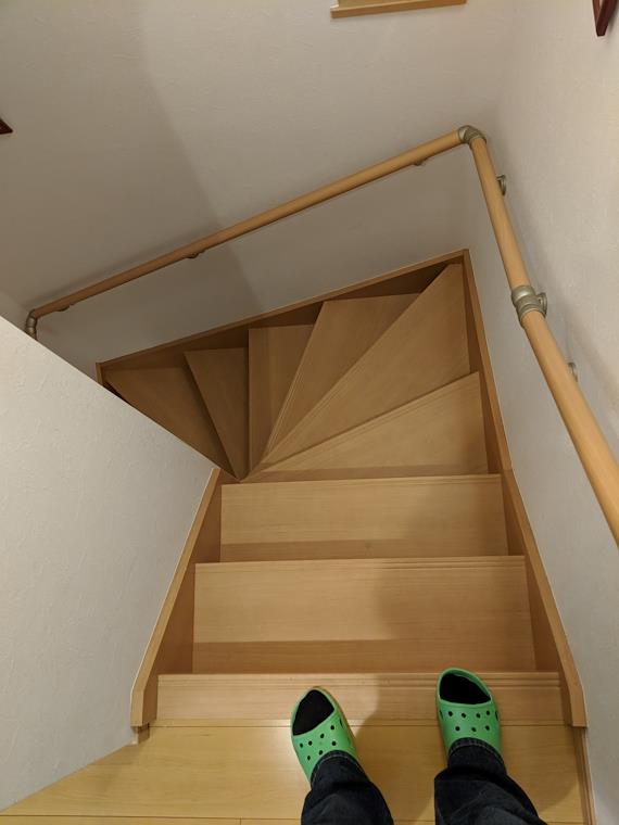 Our steps. The house was three stories, and the stairs were narrower than what we're used to, and also the railing was lower.