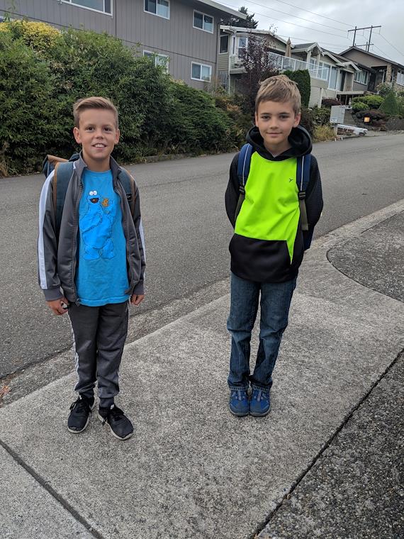With his friend Caleb