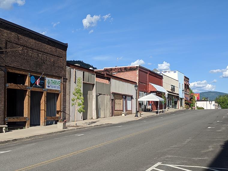 Main street, Kellogg, was deserted