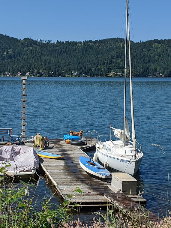 One of the many piers onto the lake. The structure on the left is a climb-up diving board.