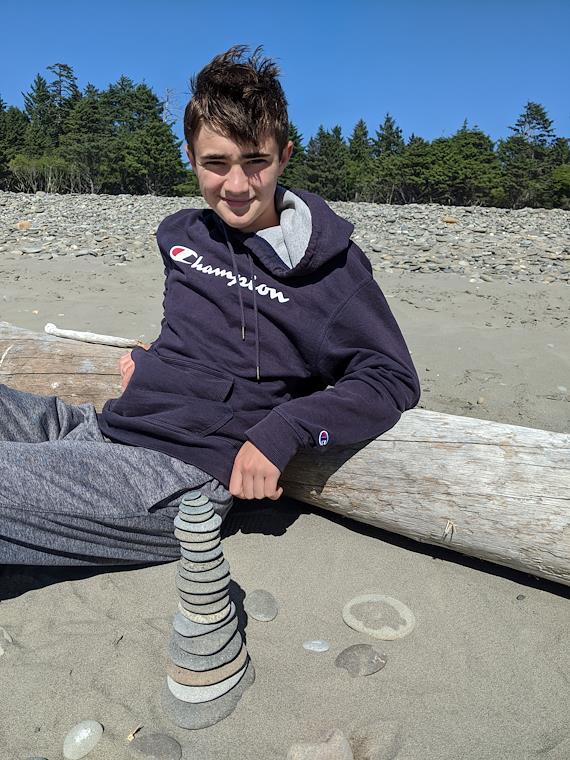 The kids competed to stack as many rocks as possible. These rocks were about as good as you could get, for that task.