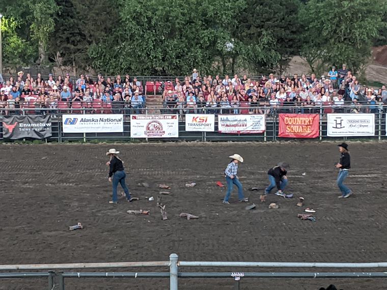 There was a singles event run by the rodeo clown, which involved a lot of shoes and boots getting thrown across the rodeo grounds