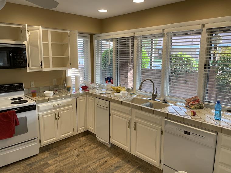 The kitchen in our rental home. It was quite dark.