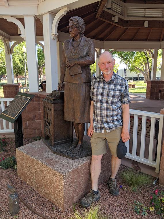 Gary, next to the new Juanita Brooks statue. Juanita Brooks was a local historian and prolific author