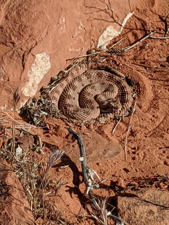 Another rattlesnake! This one around the Dino Cliffs area, on a hike with the St George Short Morning Hikes meetup group