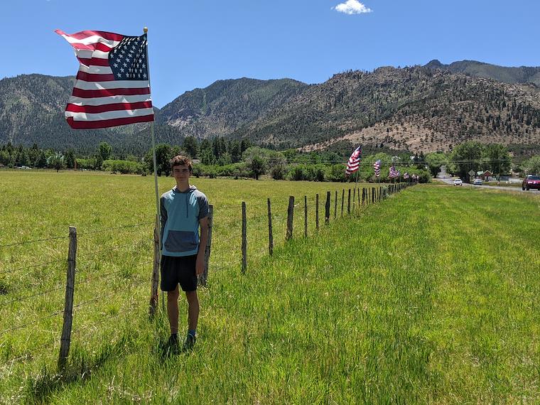 Visiting Pine Valley to beat the heat. The road entering town was lined with flags