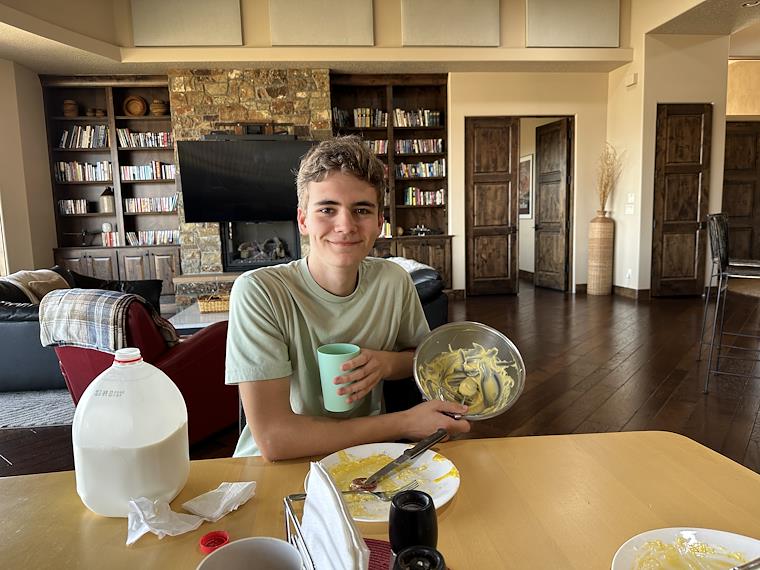 Peter made eggs benedict with hollandaise sauce. I meant to get a picture before everything was eaten, but missed my chance.