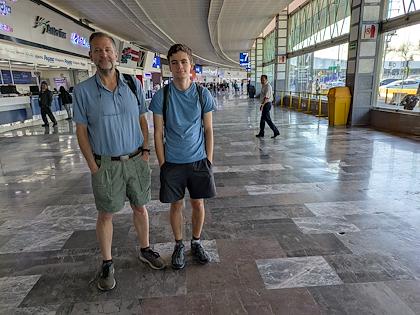 At the bus station, taking the bus to TeotihuacanThe sun umbrella was handy