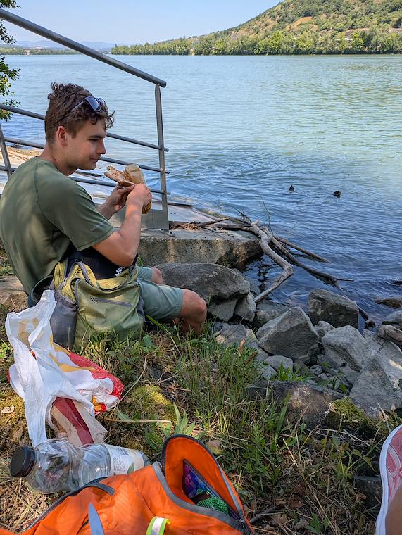 Picnicing on the way to Vienne. Right after this, there was a beautiful park with benches.