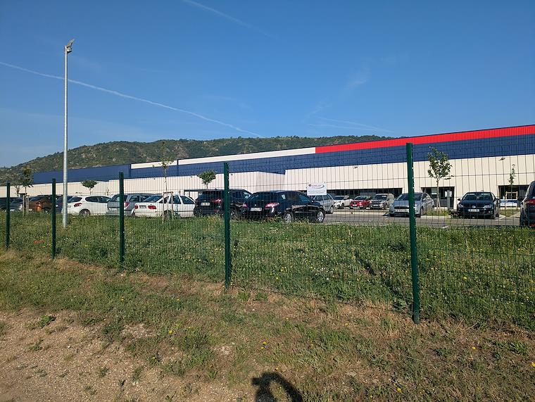 Leaving Serrieres, heading to Tournon sur Rhone. A factory of some sort - I think it was fencing.