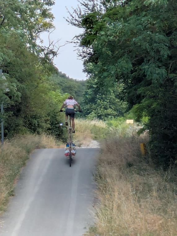 I saw this guy coming, on a ... I don't know what to call it, some kind of triangle bike ... and barely managed to take a picture. How did he get up? And down? Who knows...