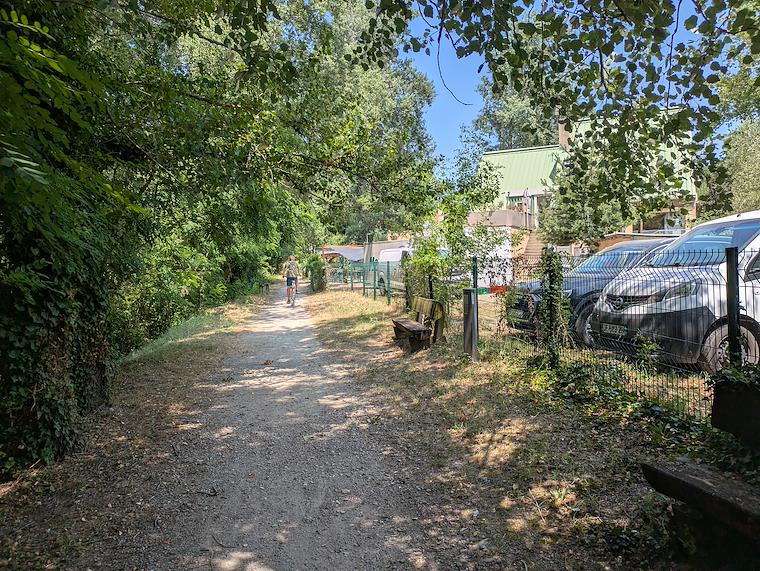 Biking to the little lake, next to the campground, Peter wanted to swim there