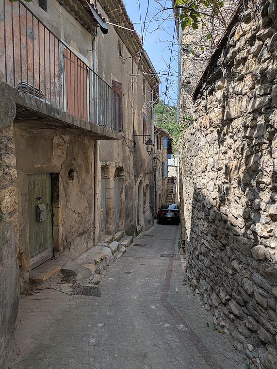 Getting to the old medieval part of Cruas, we had to squeeze past this car.