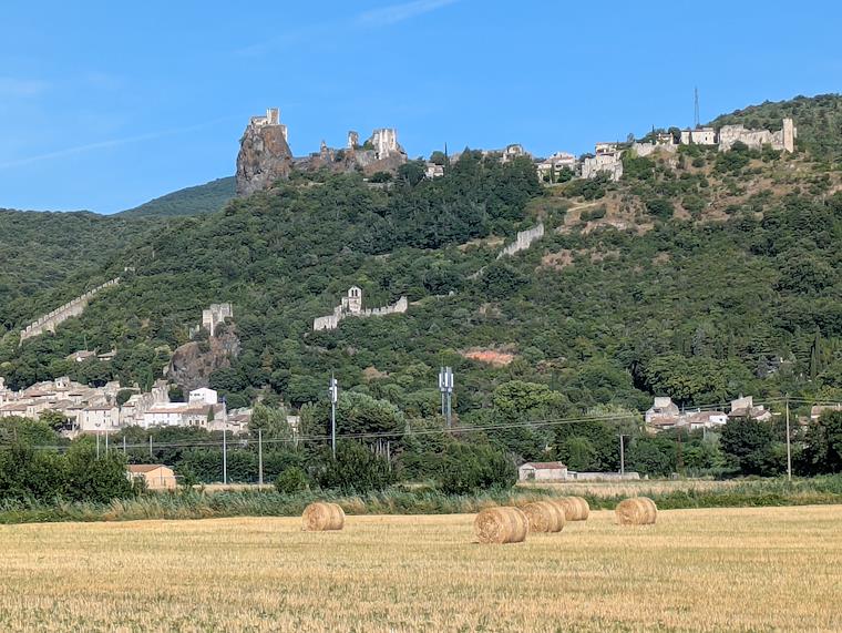 The castle of Rochmaure. I chatted for some time with a guy from Spain here, who was visiting a german fellow who's older now, and bed-ridden, but traveled the world on a bike for decades and decades - Heinz Stucke. I thought about going up to the castle but...the eternal heat!