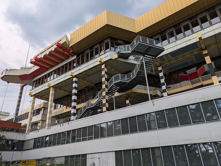 To get home (and also escape some rain), we went through the university of Konstanz. Very unusual 1970's style architecture.