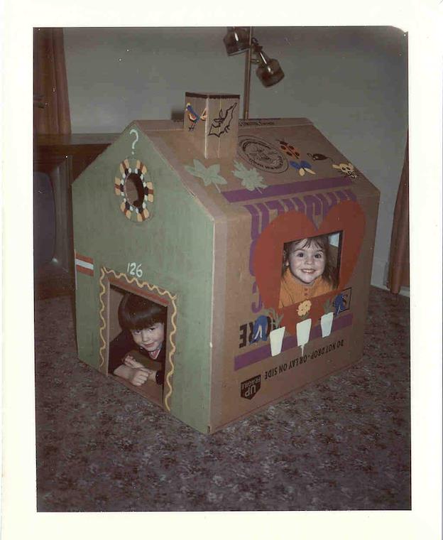 1973 My father built this cute cardboard house for us. I remember it very well.
