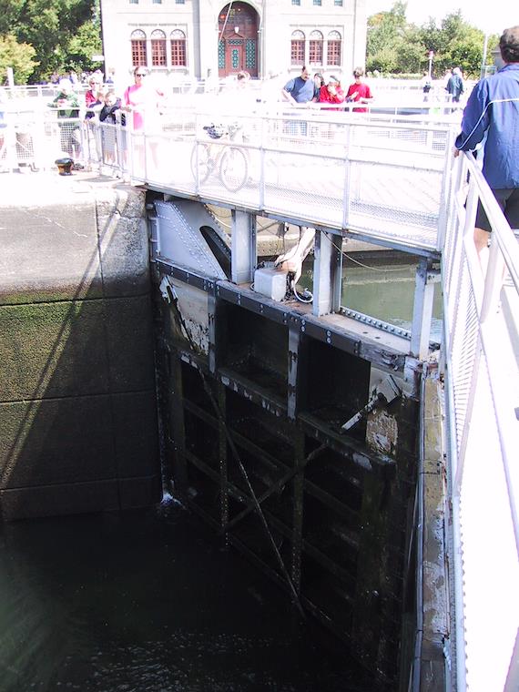 Around August 3rd, I took some excursions around Seattle with my dad and brother, and sometimes Eric. Chittenden Locks was the first destination.  This is how ships travel from Lake Union and Puget Sound.  See the water level changing?