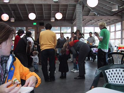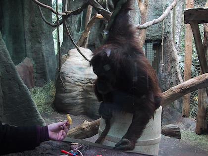 This is an "enrichment exercise" for the orangutans, so they don't get so bored. Basically one of the employees came around and showed her little toys.